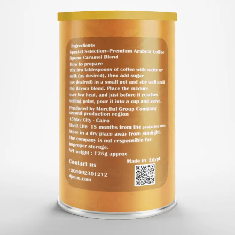 قهوة كراميل من Dpono تقدم لك مزيجًا متوازنًا يجمع بين البن المطحون عالي الجودة ولمسة كراميل ناعمة تضيف دفئًا وحلاوة خفيفة لكل فنجان. طعم غني، رائحة جذابة، ونكهة سلسة تناسب محبي القهوة المنكهة بدون مبالغة في الحلاوة.